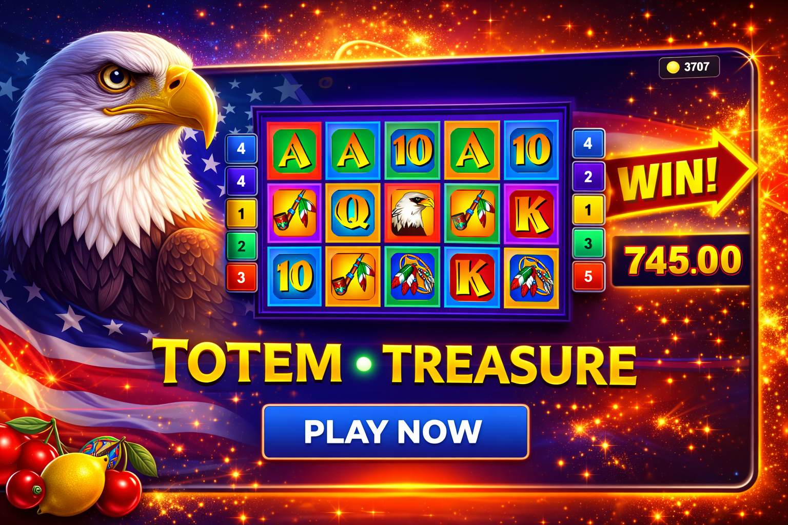 Totem Treasure 2 – Trải nghiệm cuộn (토템 트레져 2)là nội dung trải nghiệm dạng 5×3 cuộn theo chủ đề đại bàng và totem.